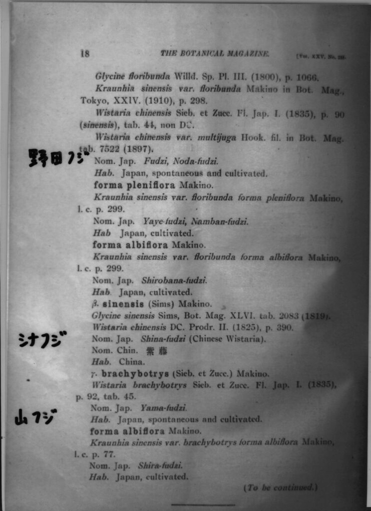 当時の植木職人、とりわけ東京の園芸界では、一般にフジを単に「フジ」とは呼ばず、「ノダフジ」と称する習慣が広く存在していました。園芸現場の呼称として定着していた名称を学術名へ取り入れることは、分類学者としてきわめて自然な判断だったといえます。