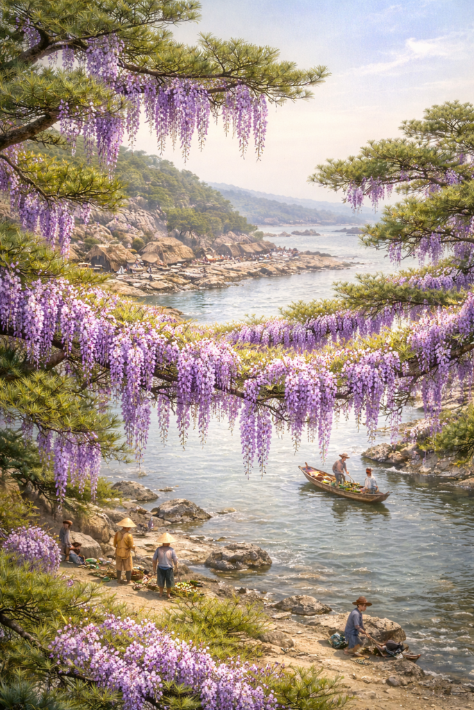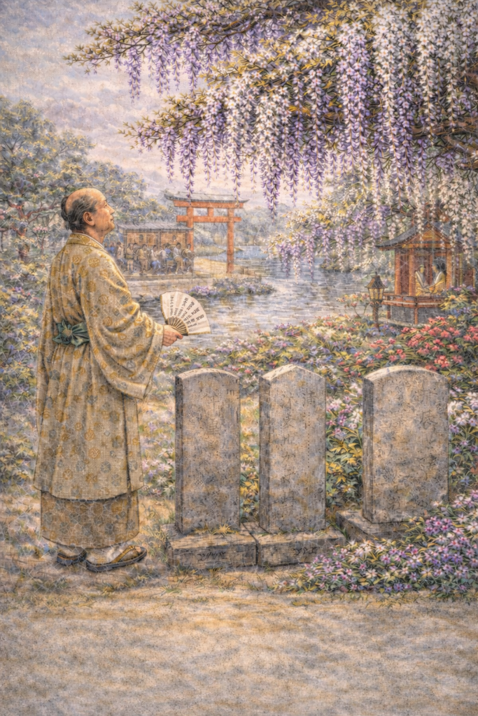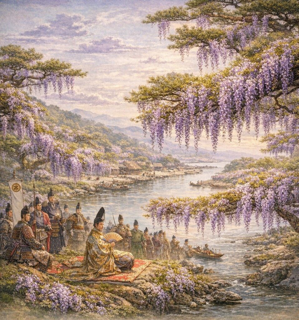 難波の景観の中に揺れる藤は、単なる花ではなく、時代の権力と文化を映し出す存在だったのです。