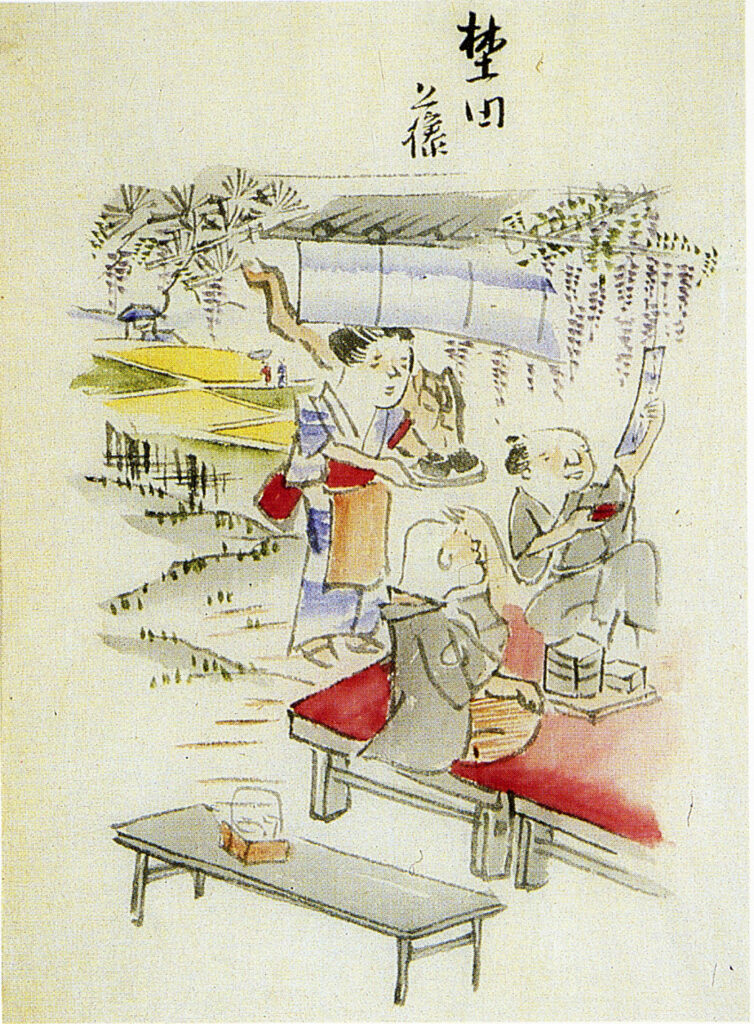 『浪華勝概帖 野田の藤』上田耕沖作。 弘化・寛政年間 (大阪市立博物館所蔵)